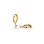 Huggie Hoop Earrings with Solitaire Drop