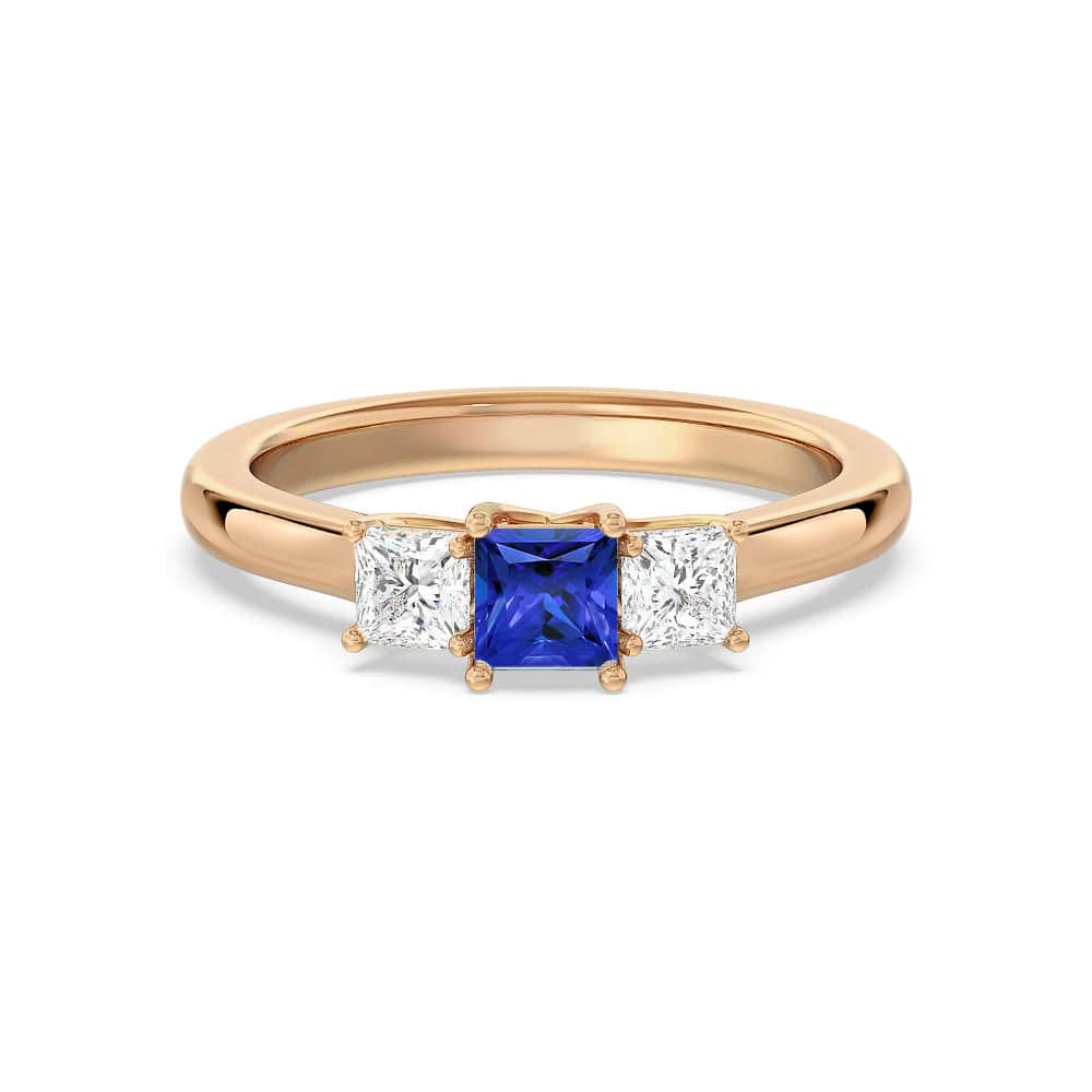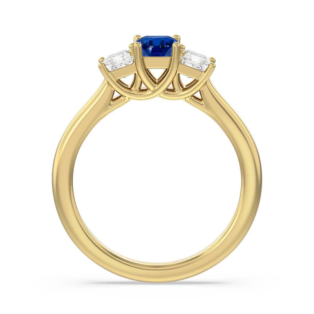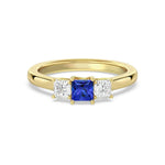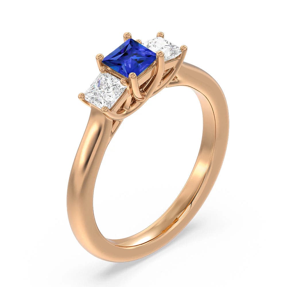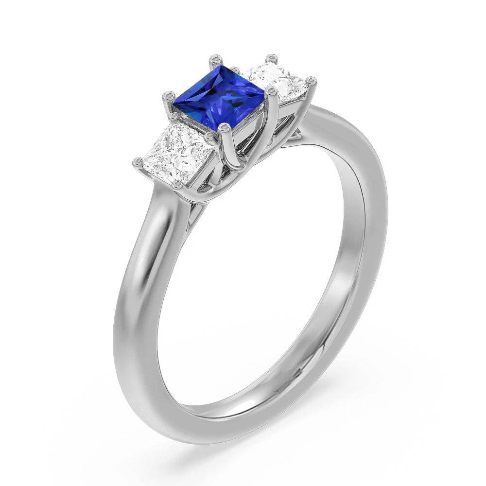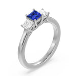 Lab Grown Sapphire and Princess Cut Diamond Three Stone Ring