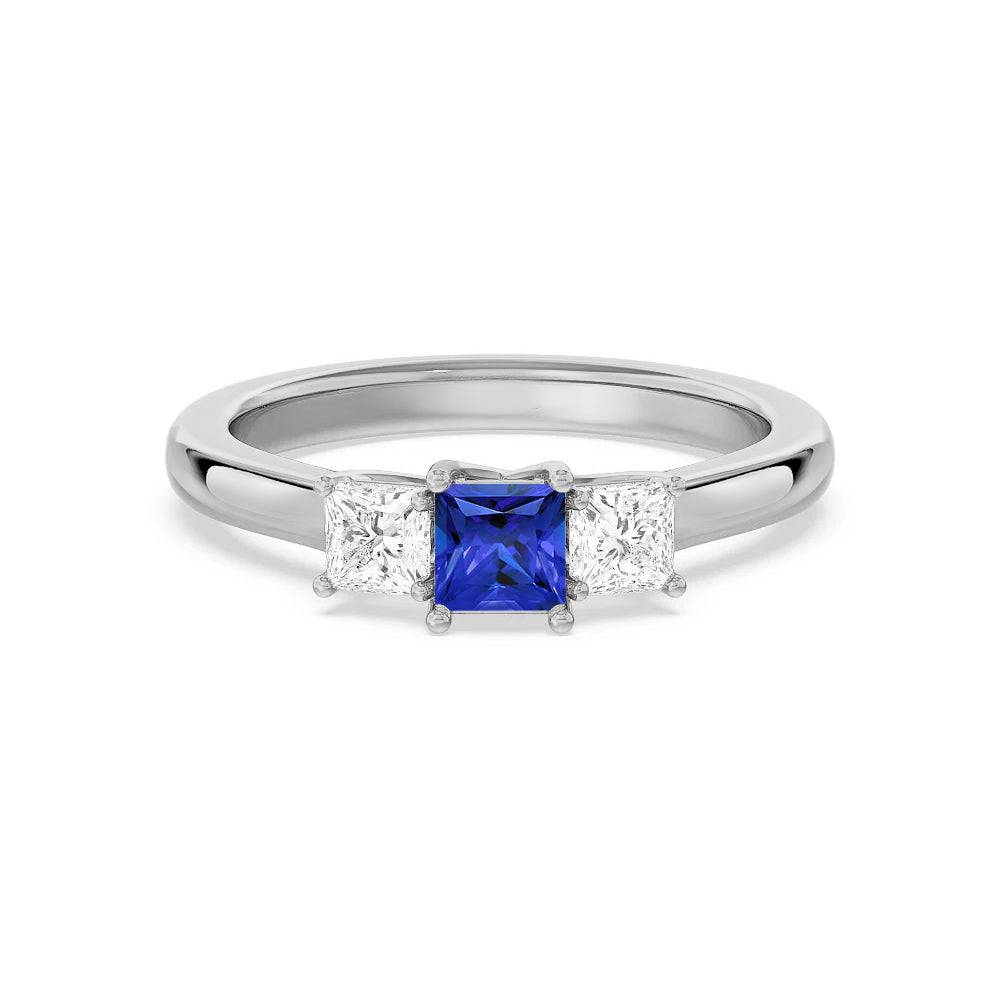 Lab Grown Sapphire and Princess Cut Diamond Three-Stone Ring - MSBLUE JEWELRY