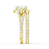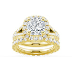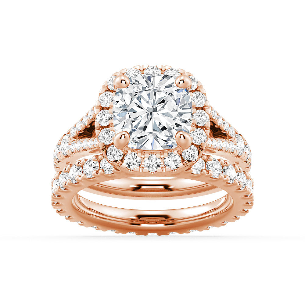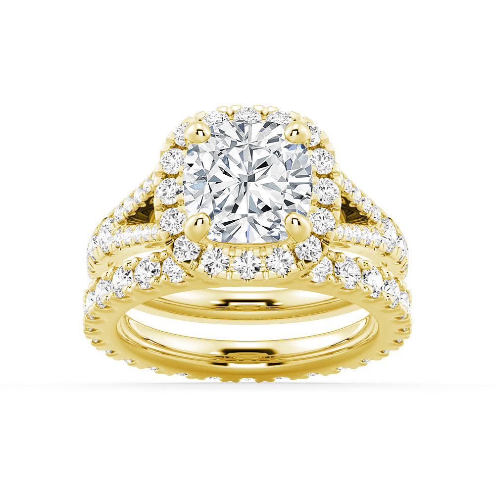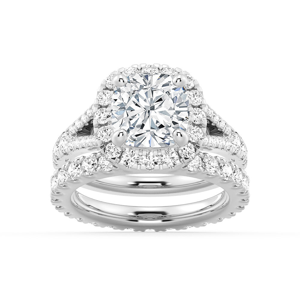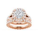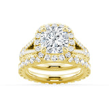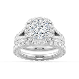 Halo Cushion Cut Split Shank Moissanite Ring Set with Matching Wedding Band