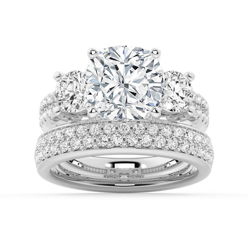 NEW Double Row Pave Three Stone Cushion Cut Engagement Ring - MSBLUE Jewelry