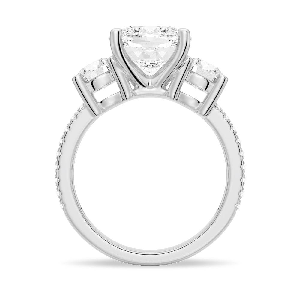 Double Row Pave Three Stone Cushion Cut Moissanite Engagement Ring