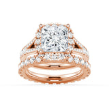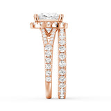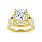 Princess Cut Split Shank Halo Moissanite Ring Set with Matching Wedding Band