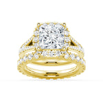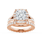NEW Cushion Cut Split-Shank Moissanite Bridal Set Halo Engagement Ring with Men's Wedding Band - MSBLUE Jewelry