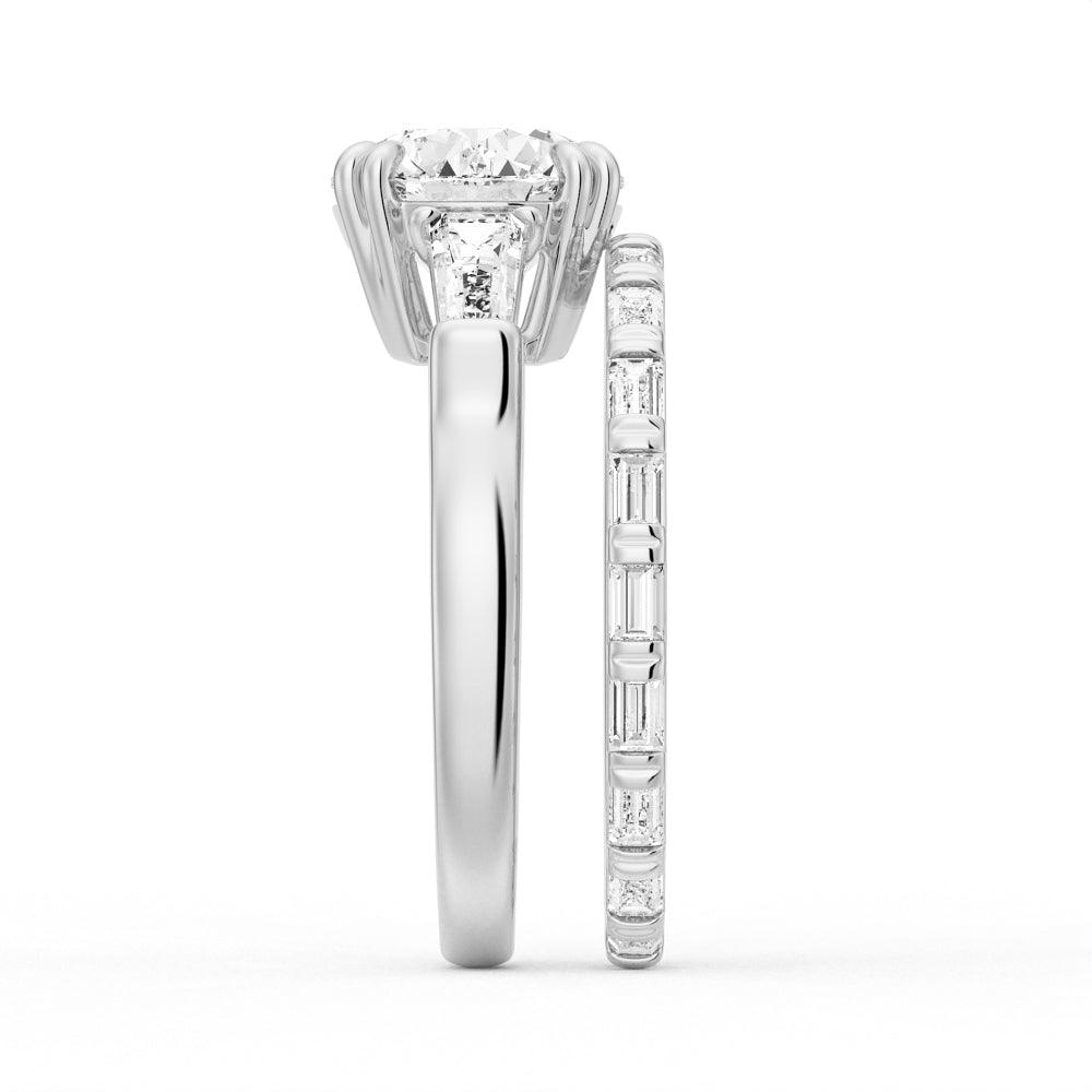 Round-Cut Moissanite Engagement Ring with Tapered Baguette Side Stones - MSBLUE Jewelry