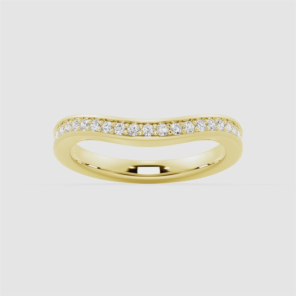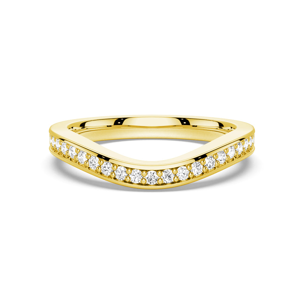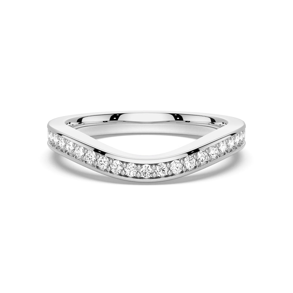 V Curved Moissanite Wedding Band with Pavé Setting