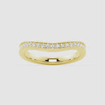 Its contoured silhouette is thoughtfully crafted to nestle perfectly against engagement rings with pear, oval, or marquise-cut center stones, enhancing their beauty with effortless harmony. Whether paired as part of your bridal set or worn solo for a touch of sparkle, this band offers a sleek, elevated statement.